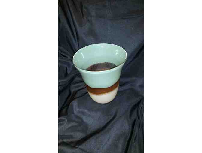 Green, Brown, and white hand blown artisan Vase.