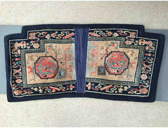 Saddle rugs are a specific genre within the product class of Tibetan rugs. It is a combination of two pieces. A rectangular rug is placed on top of the saddle - for the comfort of the rider, while a larger rug in an unusual shape is placed below the saddle - for the comfort of the horse.