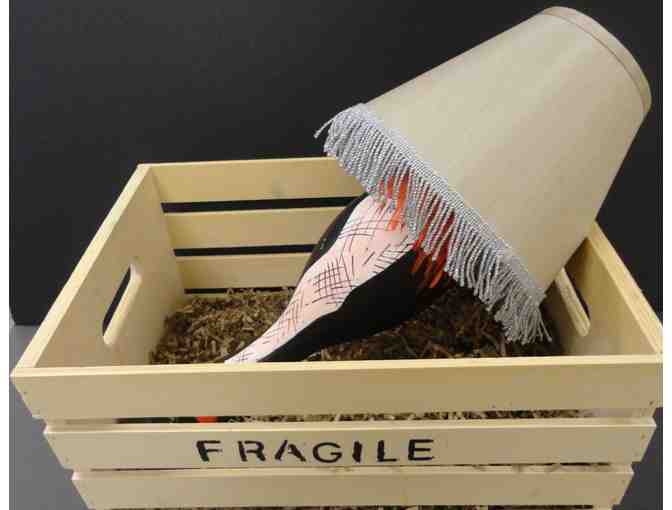 This particular bowling pin was hand crafted by canton artist Matthew Mayle, 115 caps, hammer formed and 25 hours labor.
