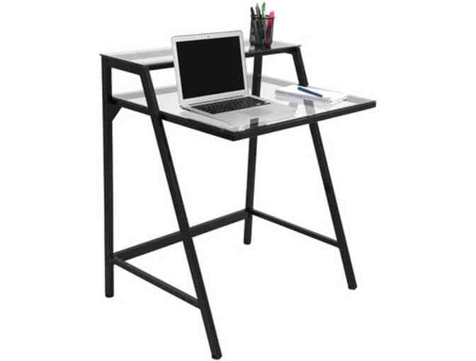 Get organized with this modern style black desk. With having two tiers of space, your work area will be clean and clutter-free!