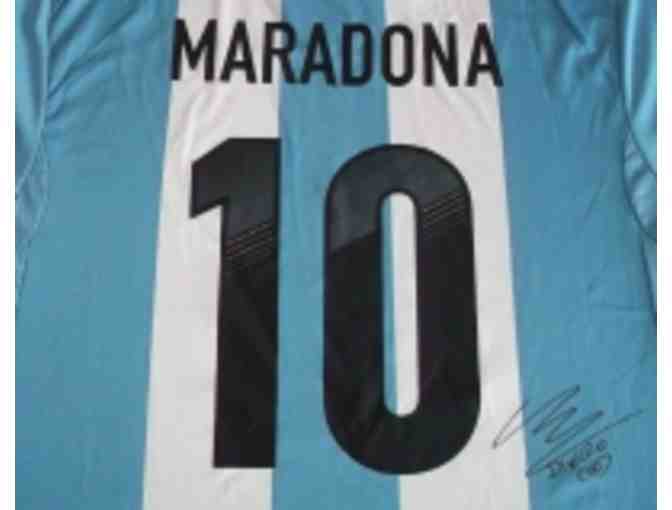 Diego Maradona Argentina Autographed Soccer Jersey . Comes with certificate of authenticity.