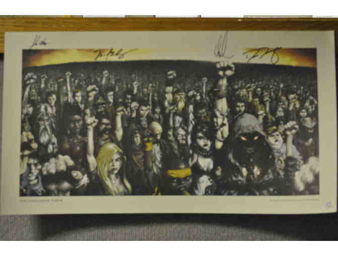 Disturbed autographed Ten Thousand Fists poster, artwork by Todd McFarlane. *Bonus Add* Disturbed poker chip from WCYY contest with band.
