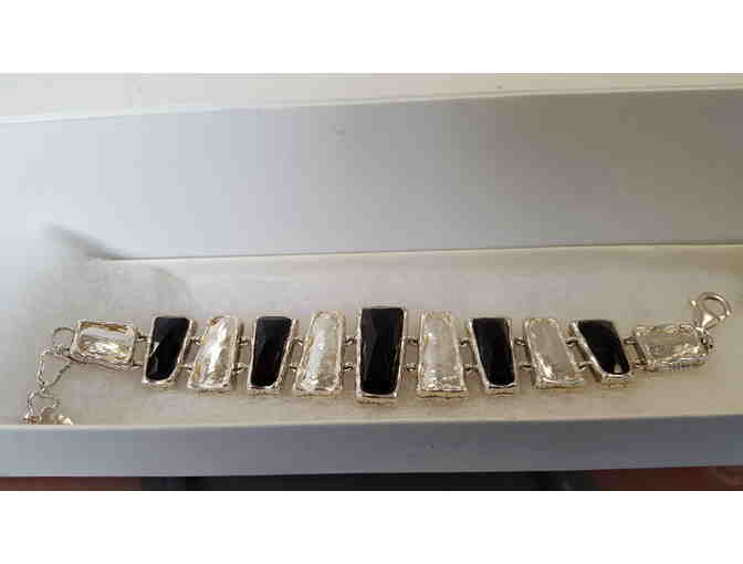 Donated by Robin Guillard, Silpada’s "Black Tie" Sterling Silver & Black Onyx Bracelet is a showstopper! The silver sparkles and the black onyx glistens in sharp contrast in a modern piece that works with high fashion as well as with high tops, jeans, and a blazer.