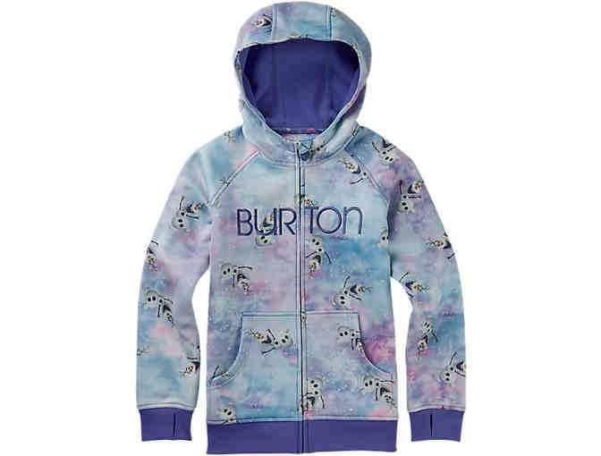 The perfect holiday present for any Frozen fan! This Disney Frozen girls' scoop hoodie is covered with "Frozens" main character Olaf. The girls’ Burton Scoop Hoodie is quick-drying, and made with highly breathable DRYRIDE Thermex™ bonded fleece fabric that will keep your little one warm all winter! Youth Size Medium.