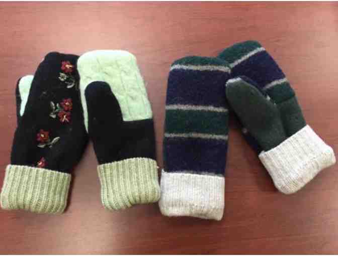 So enjoy these two pairs of upcycled mittens. Upcycling is the process of taking something that originally served one purpose and redesigning it for a different use. Sweaters are meant to keep your body warm, and Second Season upcycles sweaters to warm your hands. Felted and lined with a new, soft, and cozy fleece lining, these mittens are sure to prove that some things are definitely better the second time around!