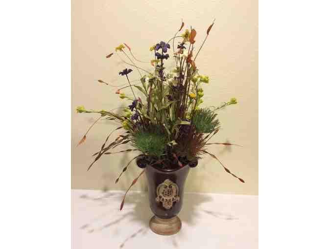 Add a special touch to your home with this beautiful custom Floral Design in a distinctive glazed vase featuring: