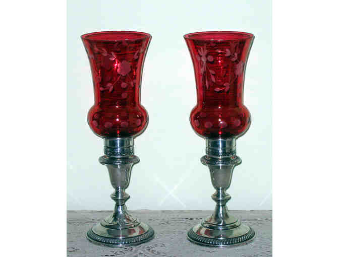 Silver & Cranberry Glass Candlesticks