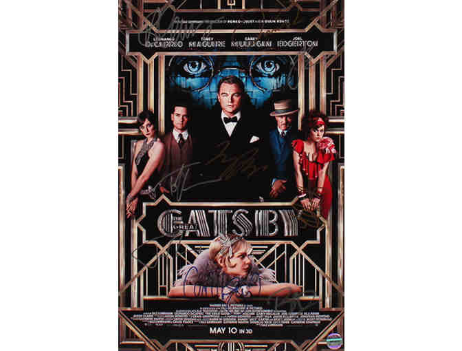 Autographed by: Leonardo DiCaprio, Baz Luhrmann, Carey Mulligan, Amitabh Bachchan, Isla Fisher, Tobey Maguire, Jay Z, Joel Edgerton and Adelaide Clemens The Great Gatsby is a 2013 film based upon an adaptation of F. Scott Fitzgerald's 1925 novel. The movie focuses around the times and adventures of millionaire Jay Gatsby and his neighbor Nick Carraway as they recount their encounters with Gatsby during the roaring twenties. The Gatsby is a man described by Nick Carraway in his journal as one of the most helpful men Carraway has ever met. When Nick is invited to a party hosted by the Gatsby it is discovered upon arrival that none of the guests are aware of who the Gatsby is, nor have they ever actually met the man himself. As the plot thickens, so does a relationship between the Gatsby and Nick Carraway, as well as a reunited love story between the Gatsby and his former lover, Daisy.