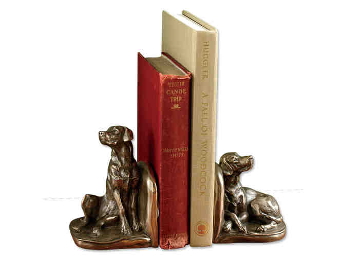 Set a distinctive tone in any den or office with these handsome bronze dog bookends. Beautifully detailed cold-cast bronze figures of America's favorite breed, the Labrador, are the highlight of these handsome bookends. Using a proprietary method of cold-casting unique to Ireland, these bronze Lab sculptures are truly fine art and exude personality that will add a distinctive touch to any desk or bookshelf. Imported.