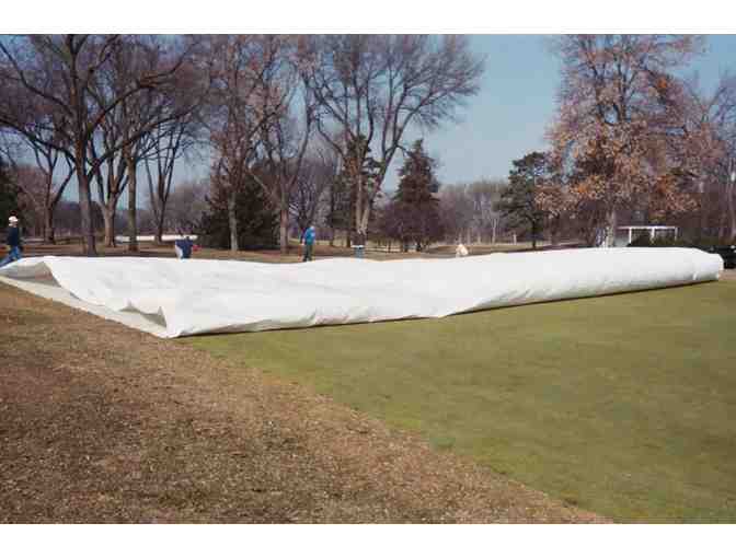 GreenJacket®, with Rip Stop Reinforcement, turf protection system, provides a unique combination of patented products to protect from the harsh effects winter can have on open turf. GreenJacket® IMPERMEABLE covers provide protection against crown hydration, the #1 turf killer in the north. GreenJacket® provides a protective IMPERMEABLE barrier layer against ice damage, as it never reaches the turf! The covers are also effective against desiccation, as the winds are virtually deflected off the GreenJacket® cover and away from the underlying turf. In addition to hydration, ice damage and desiccation, GreenJacket's® regulated light transmission rates are able to minimize temperature fluctuations helping to keep turf dormant during midwinter warm-ups, and control overgrowth in the spring. GreenJacket's® unique film qualities have a life expectancy of 5+ years. By utilizing an engineered lightweight film, they are easy to handle, fold compactly, and use a minimal amount of storage space.