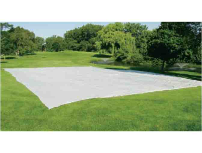 GreenJacket® PERMEABLE grow-in covers act with the sun's power to create a virtual greenhouse, helping the turf and soil warm up. At the same time, because it's permeable, the GreenJacket® permeable grow-in cover allows the turf and soil to breathe - yet still retain moisture and dramatically increase the sun's ability to heat up the underlying turf. GreenJacket® Permeable grow-in covers are made of an uncoated 2.5 oz. UV resistant woven poly material for extended life. Sod staples are also provided. GreenJacket® PERMEABLE grow-in covers provide great overnight frost protection, helping to eliminate tee time delays in late fall and early spring.