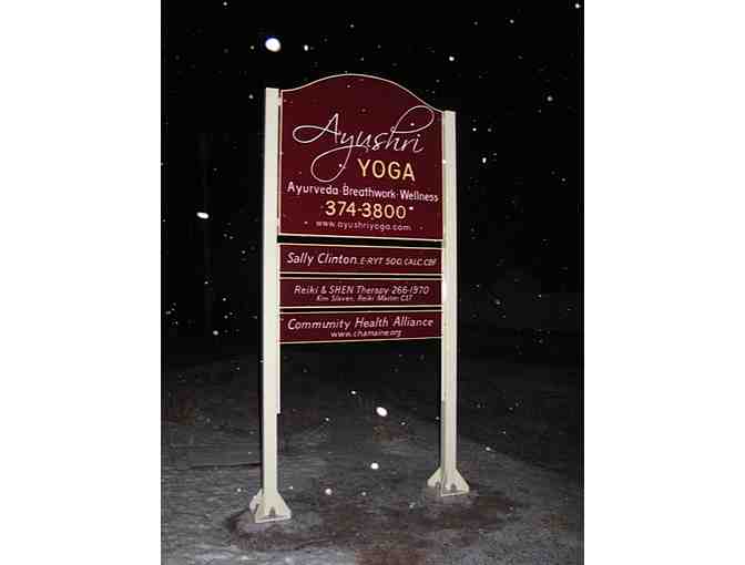 You are bidding on a 6-week group yoga session with Sally Clinton at Ayushri Yoga, Ayurveda & Wellness, in Blue Hill.