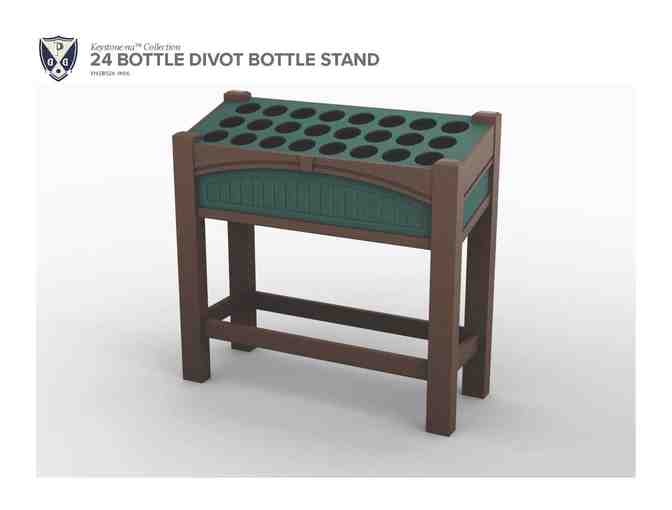 Keystone nu divot bottle stands are great for members and guests to change out empty divot bottles during their round. Unit is portable and comes in green panels with brown accents. This unit will hold 24 full/empty bottles at one time.