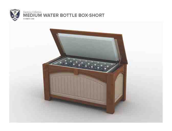 Keystone medium cooler boxes come with a 104-quart capacity utilizing an FDA-Approved plastic liner system. Cooler boxes work great for a variety of refreshments at the bag drop, at the turn, or even each hole. Units come in desert tan panels with Ipe hardwood accents.