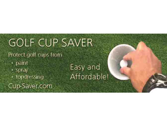 The Golf Cup Saver is a manufactured golf cup insert that can be placed in the hole on top of the cup. It was designed with the intention to help in the hole painting process for tournament play. The Golf Cup saver has been found to be very helpful in spraying greens because it sits below and down into the hole, as to not get hit by the hose or sprayer. It also works perfectly for light topdressing applications to keep the sand out of the golf cup when grooming greens.