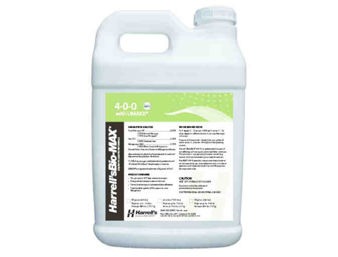 Harrell’s Bio-MAX 4-0-0 is a professional-use product offering turf managers advanced foliar nutrition. This product is a proprietary formula containing macroand micronutrients plus seaplant extract. Bio-MAX 4-0-0 provides two proven biostimulants to increase turfgrass stress tolerance and root development, and it provides both Iron and Manganese for improved color. 2 cases contain 10 gallons total.