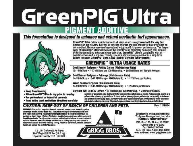 One case of GreenPigTM Ultra (5 gallons) turf green spray pigment for semi dormant and dormant turf.