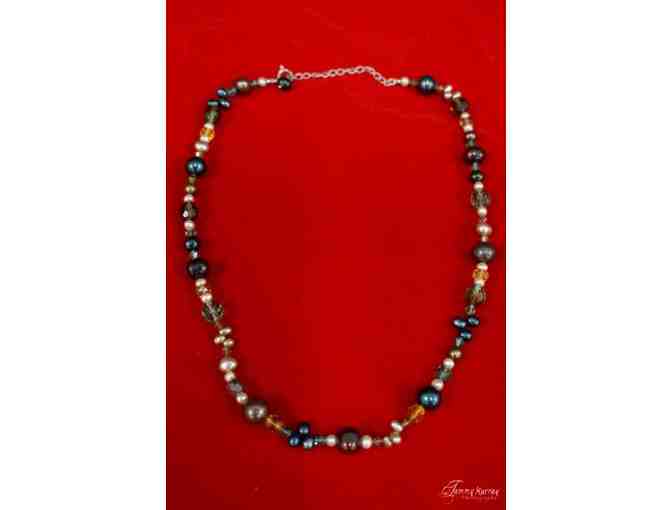 Lovely handmade necklace with a variety of multi-colored beads of a variety of materials.