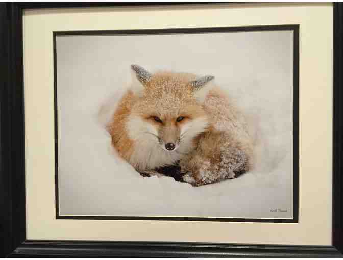 Photographed by Keith Penner, this cozy fox snuggled in snow is sure to warm any room.