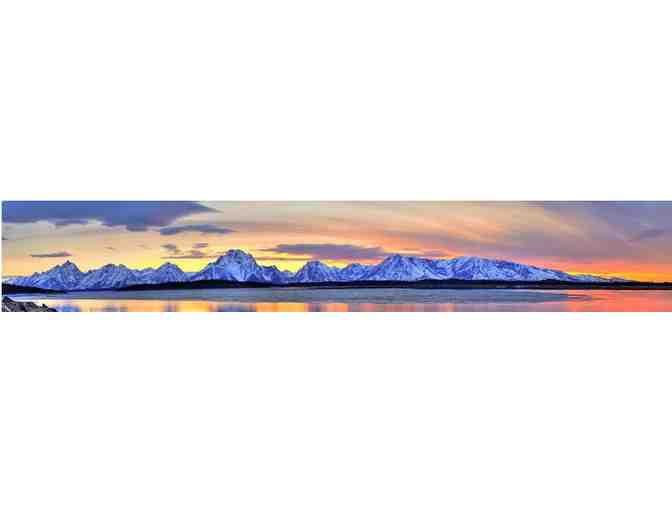 A wonderful night for a panoramic photo of the Teton Mountains on Jackson Lake, photographer David Ross captures how the half melted lake reflects a gorgeous sky in typical Wyoming fashion.