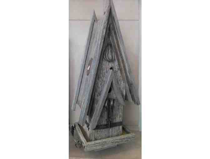 This beautiful rustic bird house was hand made locally and will jazz up any garden or yard.