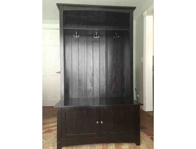 Sturdy, sleek and simple.  This is a lovely, modern, hand-piece that will add ambiance to your entryway and provide storage and orgnization for every member of the family.