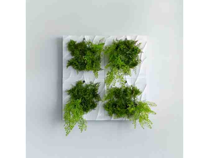 Is a living frame designed by French architect Daniel Pouzet. The design was inspired by the beauty and resilience of the Edelweiss flower. It can be used as a tabletop display, upright on a desktop, hung vertically on a wall or grouped into a mosaic wall. The frame holds six reservoirs to grow your living environment.