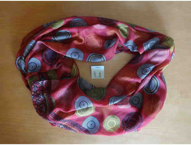 Red Circle Loop Scarf and Earrings