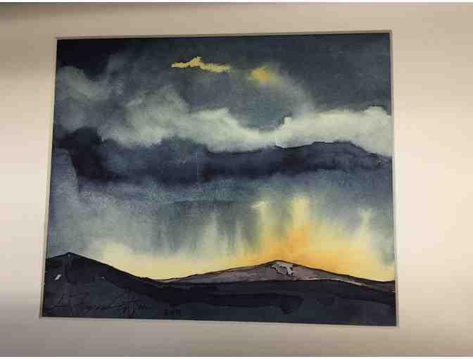 This watercolor study captures the southwestern Wyoming sunset just before a rainstorm.