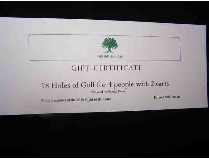 18 holes of golf for four people with 2 carts at Oak Hill Golf Club in Rice, MN.