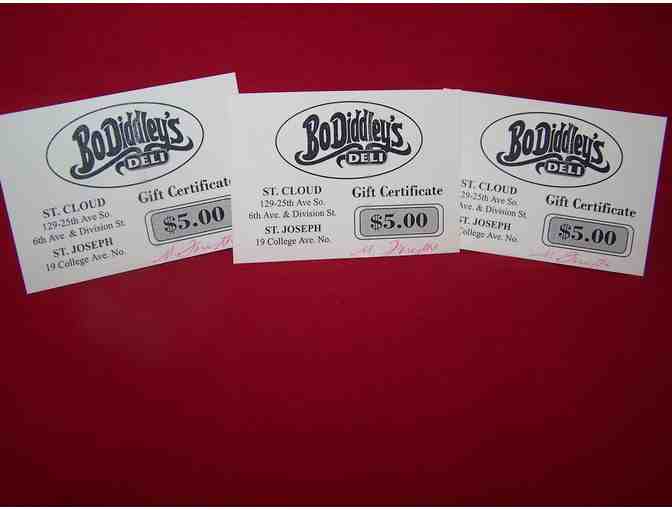 $15 gift card to Bo Diddley's (3 X $5 gift cards)