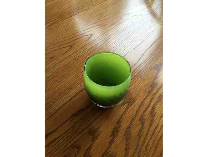 A beautiful glassybaby, green with a hint of blue created on behalf of the Seahawks Women's Association.