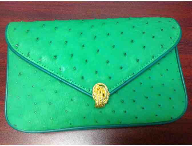 Green Ostrich clutch and Hermes Paris 100% silk scarf