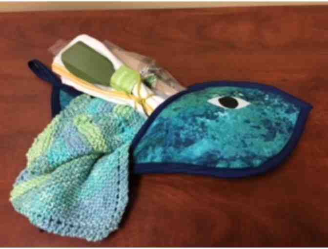 Fish Shaped Pot Holder, Spatulas, Hand-crocheted Pot Holders & Kitchen Towel