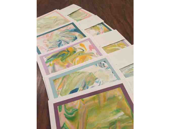 Using saving cream and food coloring on heavy paper, the students in Mrs. Kroh's After Care Program created their modern designs which were then matted on notecards.