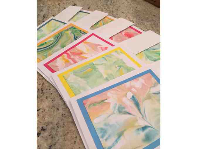 Using saving cream and food coloring on heavy paper, the students in Mrs. Kroh's After Care Program created their modern designs which were then matted on notecards.