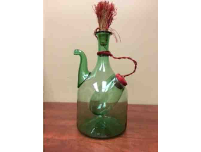 Vintage Handblown green glass wine bottle - server with ice chiller and stopper