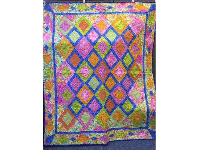Beautifully Detailed Handmade Diamond Pattern Quilt. Wonderfully vibrant colors.