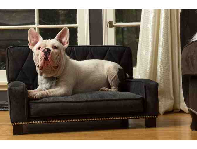 This auction item is for a custom-made luxury dog bed made to order to match the bidder's sofa or chair. The winning bidder will send a photo of a sofa or chair to Otto’s Empire, and they will do their best to duplicate it. They can make the bed to fit a small or medium dog.
