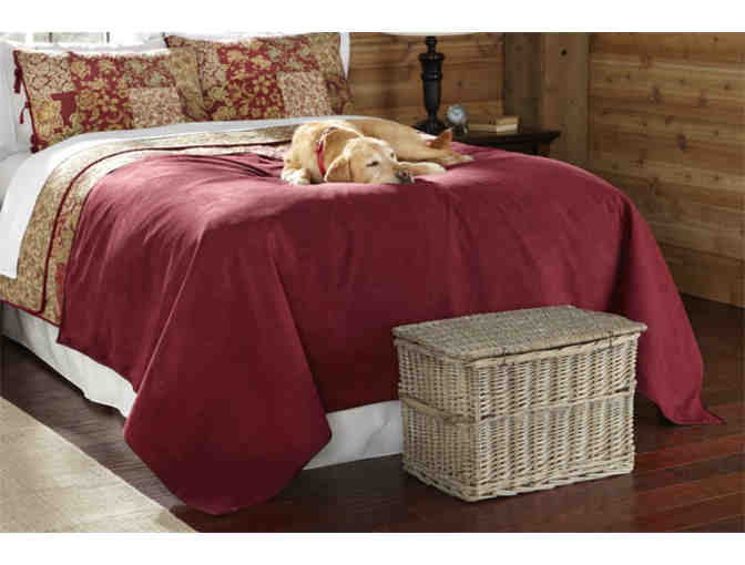 Your pet will love the soft feel of this reversible dog bedding from Orvis. This neat 'bedscarf' coverlet, similar to the extra layer of bedding used by fine hotels, protects the portion of your bed where the dog most likes to lie. The coverlet has a soft yet durable polyester corduroy weave that reverses to a neutral camel color, and features a water-resistant liner. Washable.