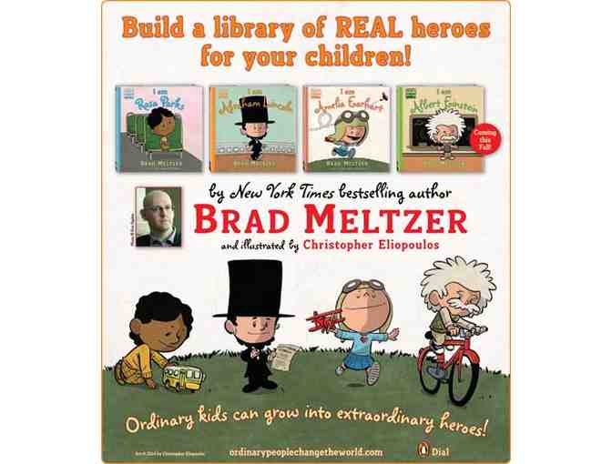 Enjoy your own personalized signed set of children's books from award-winning Author Brad Meltzer. These illustrated books were written for his own children to give them exciting heroes to look up to. This lively New York Times best-selling biography series inspires children to dream big, one great role model at a time. This set includes I am Amelia Earhart, I am Abraham Lincoln, I am Rosa Parks and I am Albert Einstein.