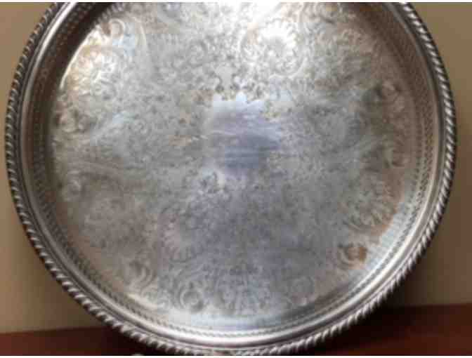 The tray measures app 15" across and is very ornate.