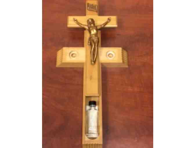 Sick Call Crucifix with Holy Water/Candle Inside