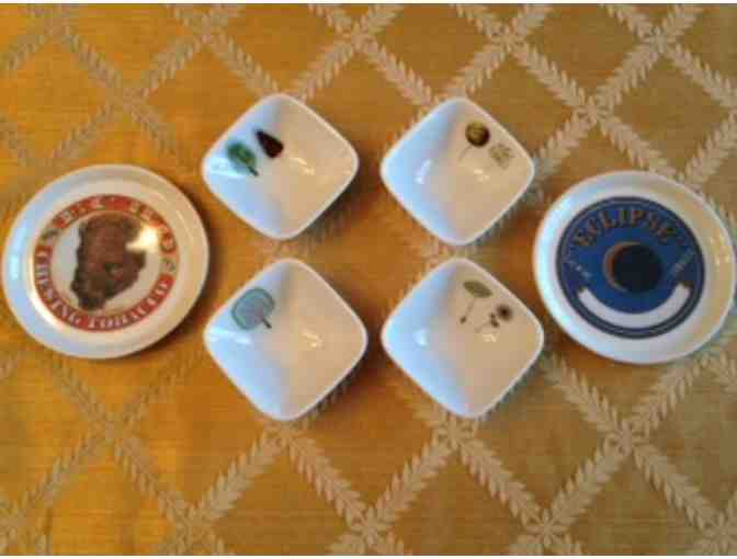 Milestone Decal Art has donated these beautiful, unique items - four lovely porcelain dipping bowls and two fun, whimsical wine bottle coasters. The dip bowls have beautiful botanical decals with gold detailing. A unique gift idea!