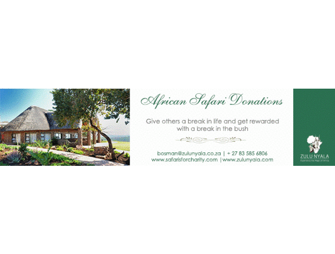 "Zulu Nyala" is a game lodge situated in Northern Kwazulu Natal, South Africa. Package for 2 for 6 nights, estimated value is ($4950). Studio parent Cari Schnepp did this safari tour 2 years ago and would be happy to give a reccomendation!