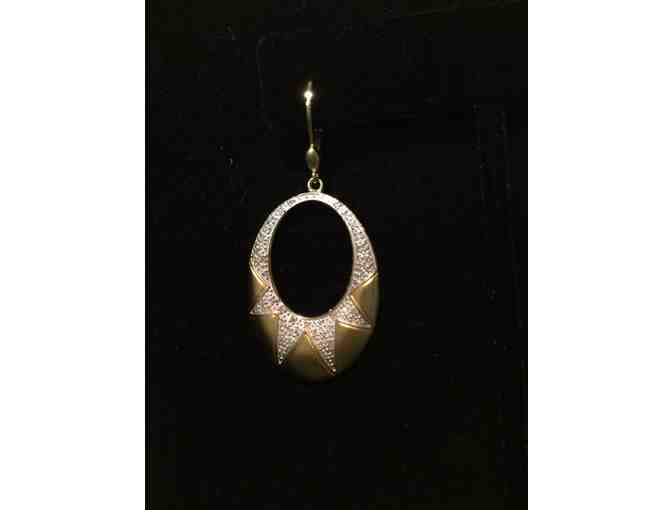 Ross Simons 18K Gold Over Silver Hoop Earrings Pava Diamonds Open Oval Drop Earrings