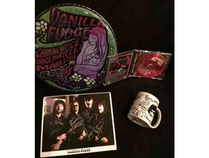 Vanilla Fudge signed Custom Drumhead, photo & CD. 1 of a kind mug signed by mult. artist