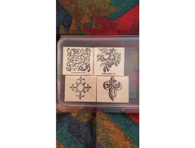 This is a RETIRED Set that has been gently used. Hard to find this set. Set of 4 wood mount stamps featuring a fleur de lis and other intricate designs. Wonderful addition to a stamper's collection or for a craft room. This donor has multiple stamp listings in this auction! Please check them all out! Great craft project with your children!