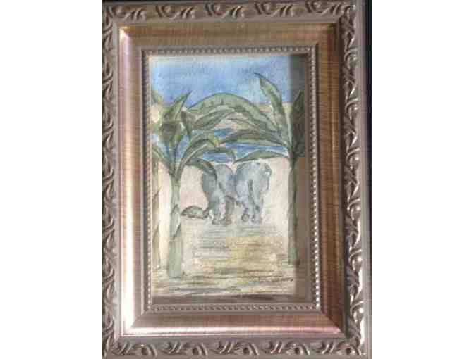 This “Ele Butts” painting is a watercolor on professional Arches watercolor paper. Modeled after the elephants at Wildlife SOS.