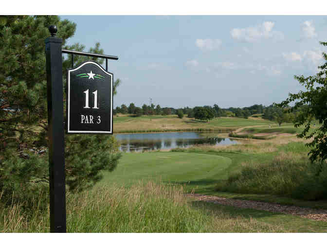 The routing features dramatic elevation changes – up to 40 feet on certain holes – mature trees and natural areas, meandering lakes and flowing streams. There are 75 acres of prairie grass flowing naturally throughout the layout.